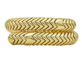 A flexible single coil of Tubogas design in bright eighteen karat yellow gold. The interior circumference is 5.50 inches and the width of the chain measures 12.00 mm. It is marked by the maker with Italian control marks. The bracelet is accompanied by its original box.