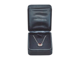 Designed as a circular cut pink tourmaline, measuring 7.40 x 4.20 mm and weighing approximately 1.15 carats, framed by (22) round brilliant cut diamonds. The circular platinum pendant suspends from a delicate cable link platinum chain. It is stamped by the maker and for its assay.