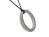 Designed as a platinum ovoid pendant, set with (200) round brilliant cut diamond pavé, weighing 2.60 carats total weight, on a silk cord. The pendant is marked by the maker, for assay and country of manufacture. It is accompanied by its original box. The last known retail is $31,000.