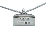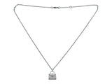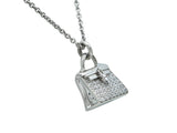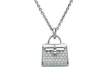 Designed as a Kelly bag pendant charm crafted in eighteen karat white gold, on a trace chain. It is set with (38) diamonds weighing 0.39 carat. The necklace is 15.74 inches in length; it weighs 12.56 grams. It is marked by the maker with its serial number, assay, and hallmarks.