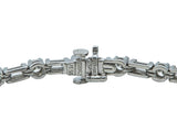 Designed as a line of alternating (19) round brilliant cut or (19) baguette cut diamonds in platinum. The approximate total weight is 4.00 carats. The length is 7.00 inches. It is marked by the maker, for its assay and with its serial number.