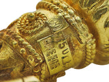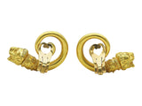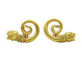 Each designed in eighteen karat yellow fold as a tapering spiral terminating with a lions head with applied ropework and granulation decoration. They are fitted with clip backs for non-pierced or pierced ears. The earrings are 1 inch in length and weigh 16.57 grams. The earrings are marked by the maker, for assay and with hallmarks.