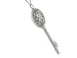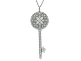 Designed as a key shaped pendant crafted in platinum, on a trace chain. It is set with (102) diamonds weighing approximately 1.02 carats. The chain is 19 7/8 inches in length and the pendant is 2 3/8 inches long; it weighs 13.3 grams. It is marked by the maker and for assay.