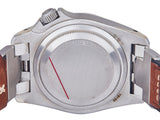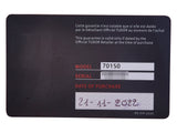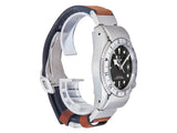 Wear: The watch appears worn with moderate surface scratching at buckle and slight indentation to case at 10 o'clock hour, but with case stickers.