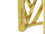 Designed as a eighteen karat yellow gold oval cuff bracelet featuring an openwork design of intersecting bamboo shoots. The bracelet's interior circumference is approximately 6 inches, it is 1 7/16 inches wide and it weighs 62.6 grams. The bracelet is marked for the maker and assay. It is accompanied by a photocopy of its invoice dated 2007