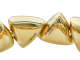 The bracelet is composed of eighteen karat rose gold alternating triangular links. It's interior circumference is approximately 6 inches and it is 5/8 inch wide; it weighs 64.37 grams. It is stamped by the maker, with serial number, and for assay. The current retail is $27,100