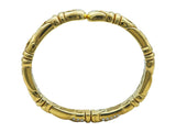 A flexible bright eighteen karat yellow gold cuff, set to the front with (50) round brilliant cut diamond pavé . The interior circumference is 6.25 inches and the width measures 9.80 mm. It is marked by the maker and with Italian registration marks.