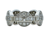A concentric design, composed of interlocking eighteen karat white gold geometric links, set with (50) round brilliant-cut diamonds. The total diamond weight is approximately 1.05 carats. The ring is a size 52 and measures 9.00 mm in width. It is signed by the maker and marked for size, assay, serial number, hallmark and maker mark. It is accompanied by its certificate of authenticity dated 2007.