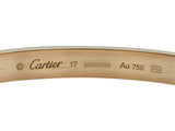 The oval bangle is designed in eighteen karat rose gold, displaying the collection's iconic screw motifs throughout. It is a size 17 and measures 6.10 mm in width. It is stamped by the maker, with serial number, size, control and maker mark. The bracelet is accompanied by its original box, certificate of authenticity dated 2010, Cartier screwdriver and service paperwork. The current retail is $7950.