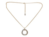 The pendant is designed as three interlocking eighteen karat yellow, rose or white gold rings, set with (349) round brilliant-cut diamond pavé. The pendant suspends from a two-row beaded yellow gold chain. The pendant measures 32.00 x 26.00 mm. The chain measures 16.00 inches. It is marked with the serial number, maker and hallmarks. It is accompanied by its original box and certificate of authenticity dated 2024. The retail price is $24,900.