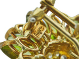 Each designed as an eighteen karat yellow gold flower head, set with (28) marquise-cut peridot petals and centered by (38) round brilliant-cut diamond pavé. The backs are fitted with posts for pierced ears and omega clips. The earrings measure 27.00 mm in diameter. They are stamped with the maker's mark, assay and Italian registration marks. The earrings are accompanied by their original box.