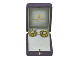 Wear: Some peridot with surface abrasions, only visibly under magnification. One post is slightly curved, but wears comfortably. The diamonds are G-H in color and VS1-VS2 in clarity.