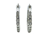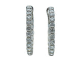 Each an inside-outside (40) round brilliant cut diamond and platinum hoop. The total diamond weight is approximately 6.00 carats. They are fitted with posts for pierced ears. The earrings measure 3.00 inches in diameter. They are marked by the maker, with its serial number and for assay.