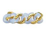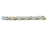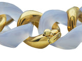 Designed as a series of alternating eighteen karat yellow gold and carved chalcedony curblinks. It measures 7 3/8 inches in length and 1 inch wide it weights 75.5 grams. The bracelet is marked by the maker, for assay, and numbered.