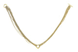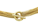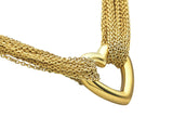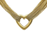 The necklace in polished 18K yellow gold designed as a series of finely wrought chains suspending a polished openwork heart pendant, completed by a toggle clasp. The necklace is 16 inches long; it weighs 42.0 grams. It is marked by maker and for assay. It is accompanied by its pouch.