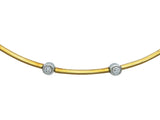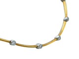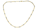 Designed as an eighteen karat yellow gold and platinum link necklace featuring (21) bezel set round brilliant cut diamonds weighing approximately 0.63 carat total. It is 16 1/4 inches long; it weighs 23.7 grams. It is marked by the maker and for assay.