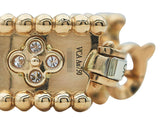 Each a hoop accented with clover motifs in eighteen karat rose gold, framed by brightly polished perlée, set with (40) diamonds, weighing 0.62 carat. The earrings are fitted with posts and omega backs for pierced ears. They are 19.50mm in diameter; they weigh 15.1 grams. The earrings are marked by the maker, for assay, and with its serial number. They are accompanied by their Certificate dated 2015. The current retail price is $15,400.